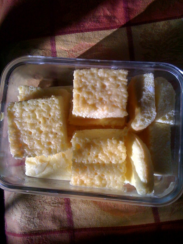When they came out of the oven and I cut them up into squares Jonathan came up with the idea to call them Egg "Brownies" because they did kind of look like little yellow brownies!